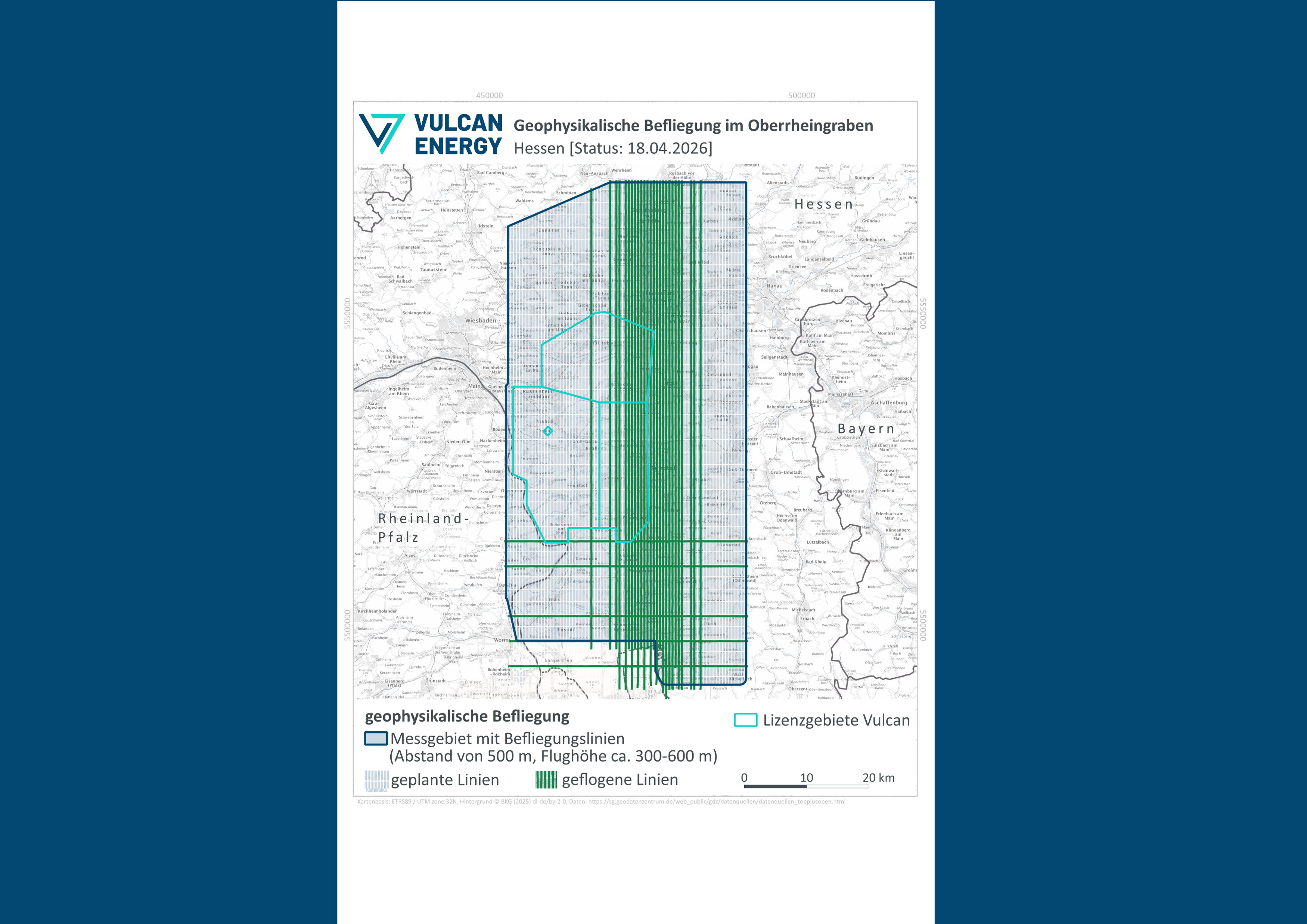 Am 15. November 2025 startete im Auftrag von Vulcan Energy eine großflächige Flugvermessung im mittleren und nördlichen Oberrheingraben durch. Ziel ist es, den geologischen Untergrund besser zu verstehen und die Planung zukünftiger Geothermieprojekte zu verbessern.